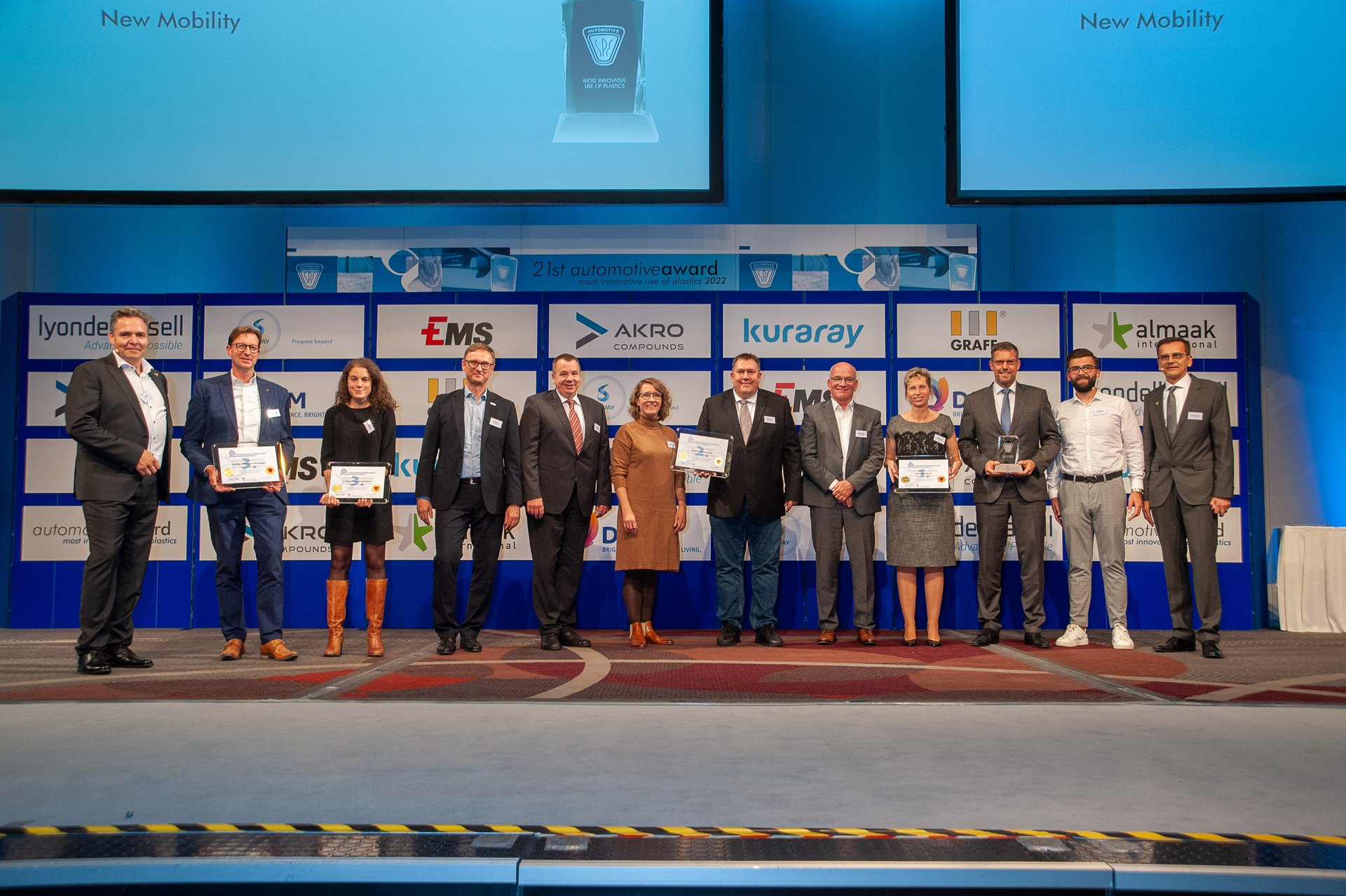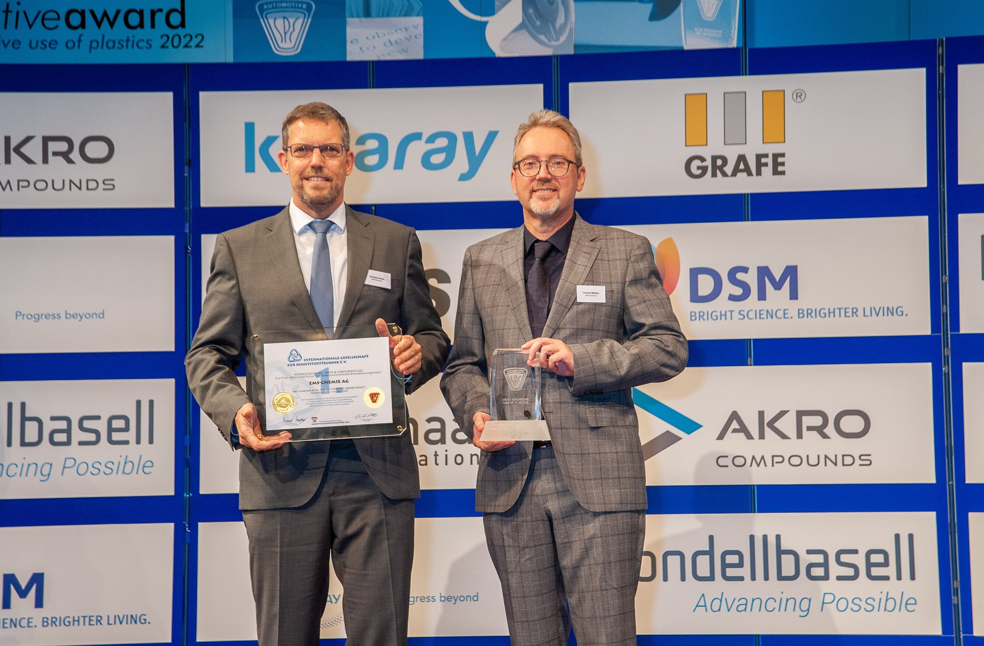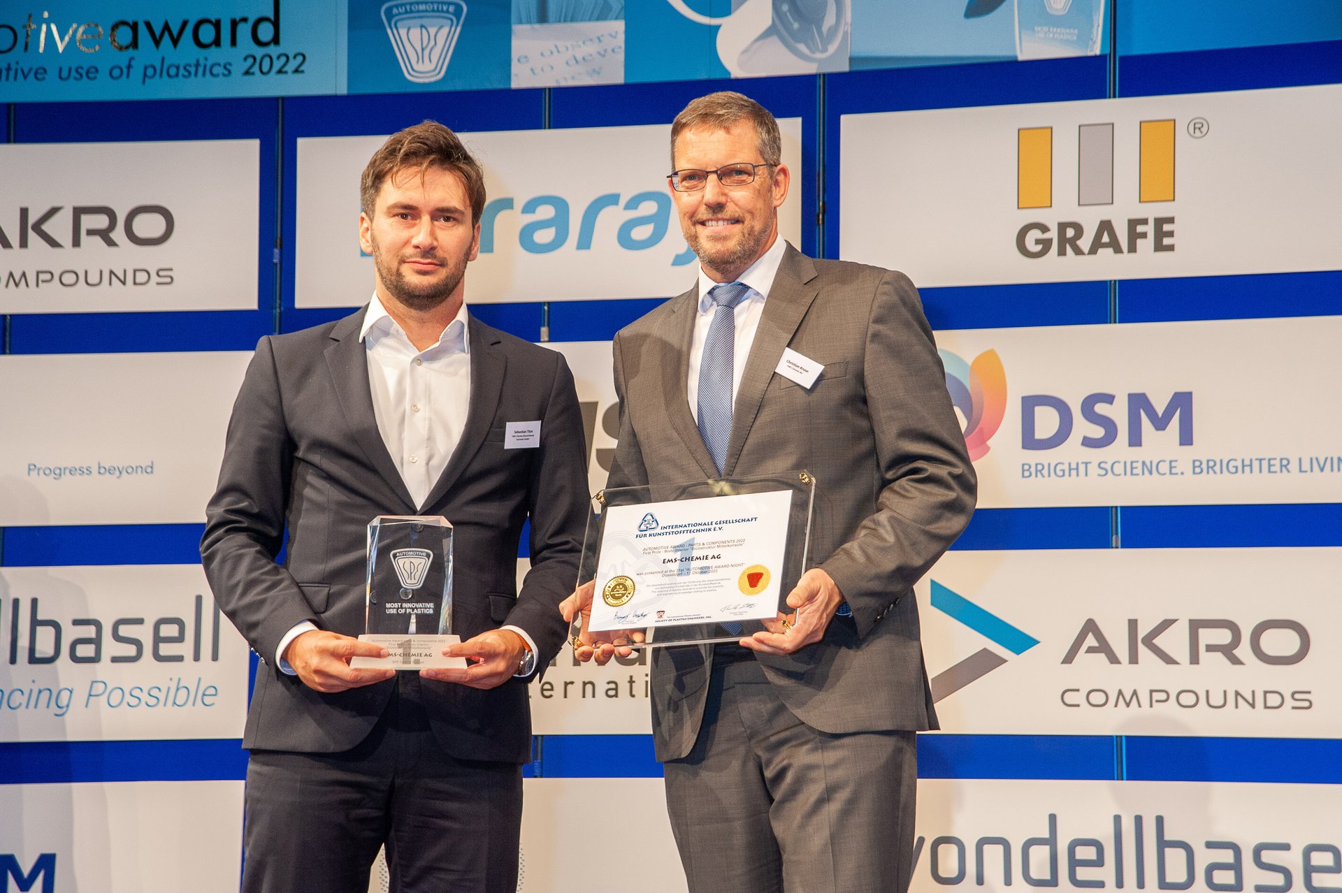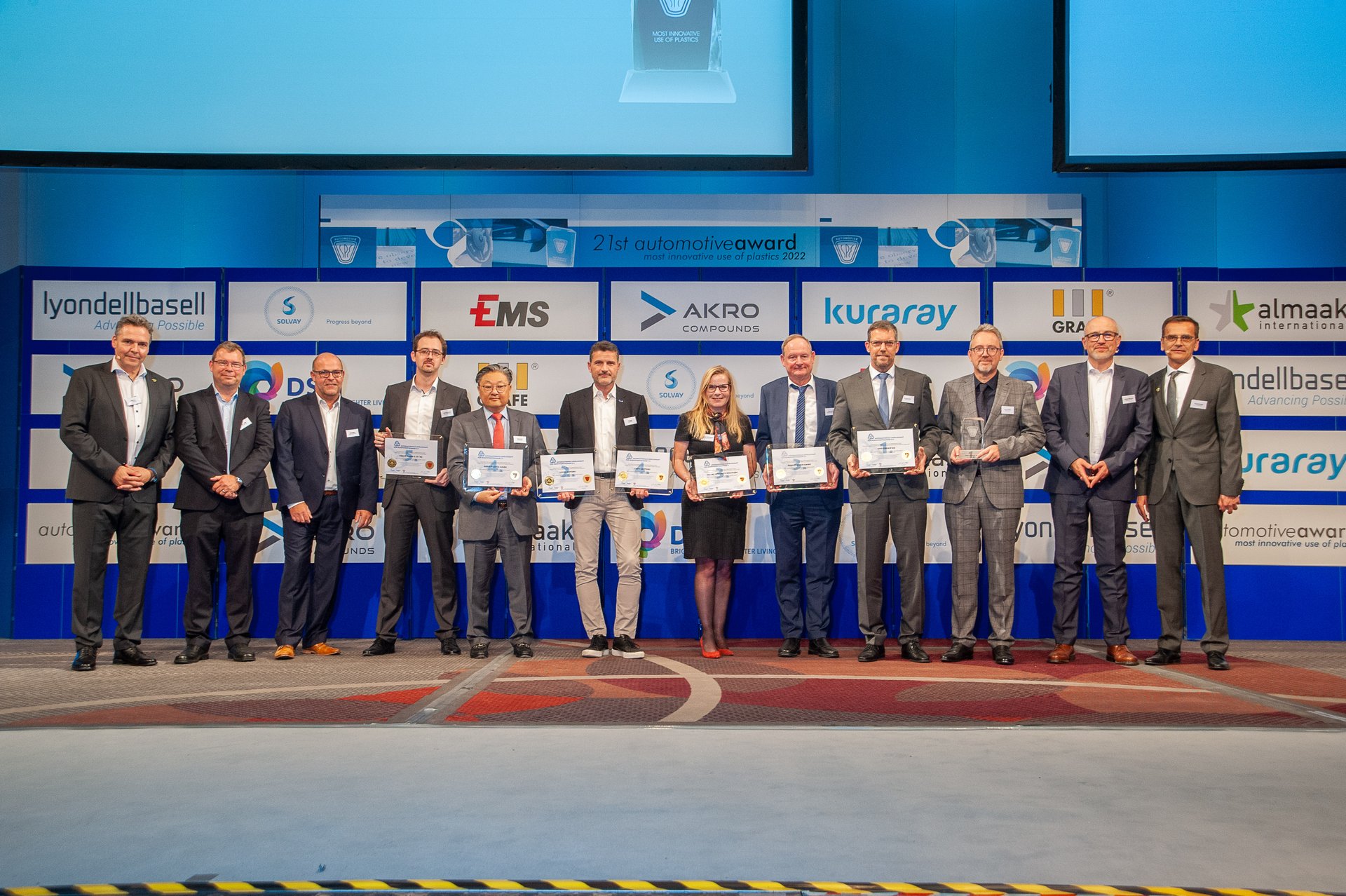 Die Internationale Gesellschaft für Kunststofftechnik verlieh an der 21. SPE Award-Night am 17. Oktober 2022 in Düsseldorf/Neuss wieder ihre begehrten Auszeichnungen für die innovativsten Kunststoffanwendungen in der Automobilindustrie. Gleich drei Anwendungen aus EMS-Materialien wurden mit den prestigeträchtigen Awards ausgezeichnet.