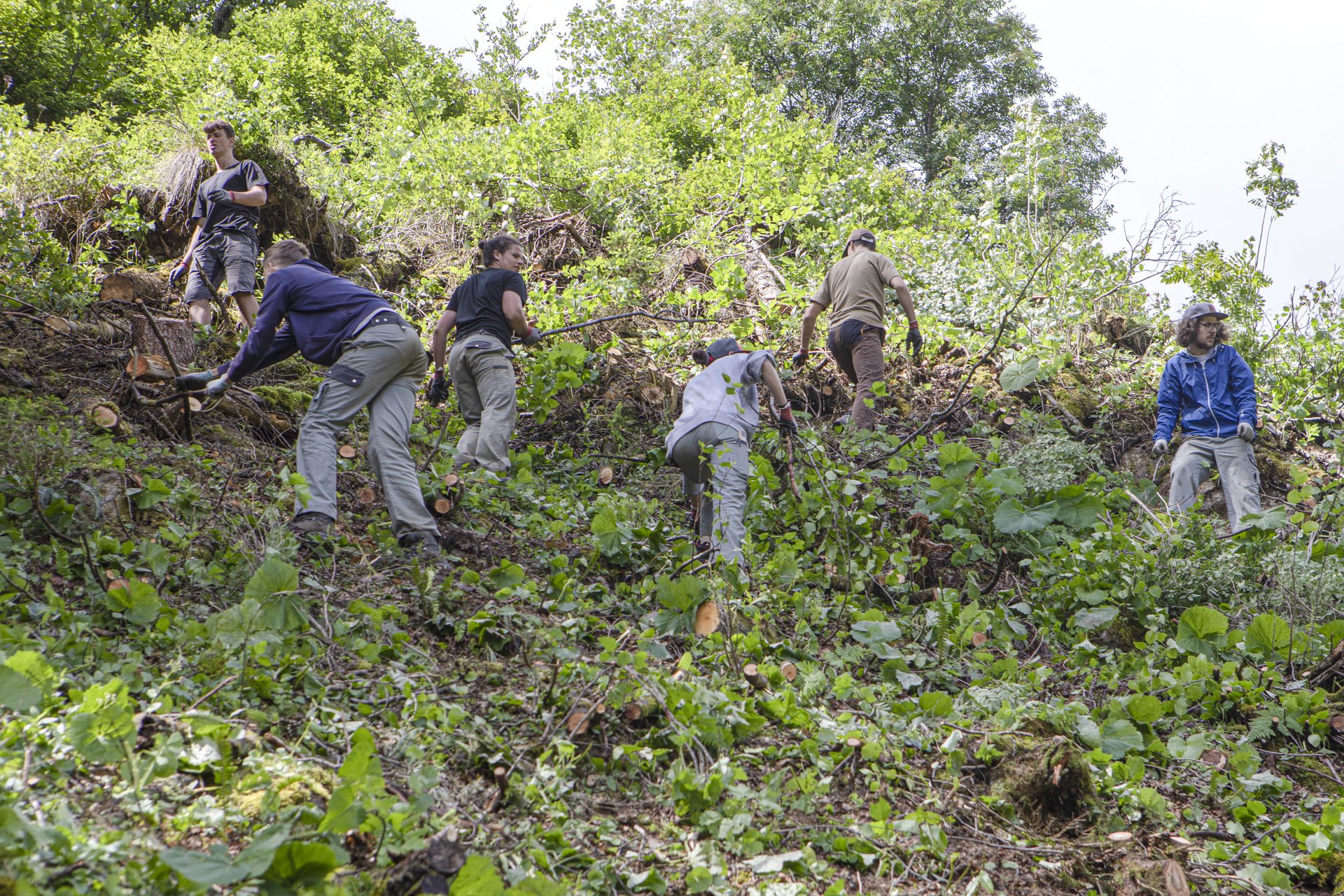 Mit Pickel und Schaufel wurde Meter für Meter im unwegsamen Gelände bearbeitet. Diese Aufgaben forderten die EMS-Lernenden körperlich anders, als sie sich das während ihrer Ausbildung gewohnt sind. Nach einem anstrengenden Tag wurden die Lernenden von Muskelkater und hie und da mit Blasen an Händen geplagt.