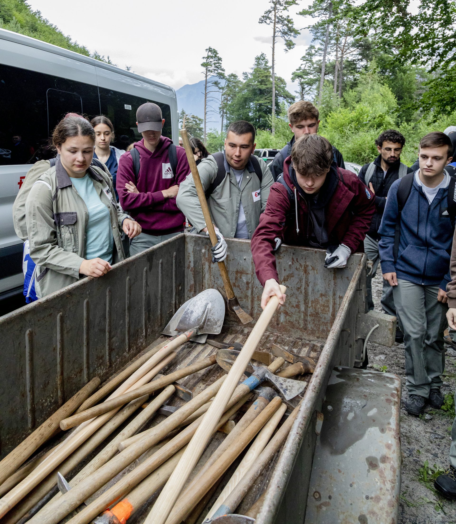 Für viele der EMS-Lernenden war es eine neue und abwechslungsreiche Erfahrung: «Einmal raus aus dem Alltag und eine Woche mit komplett anderen Arbeiten in der Natur verbringen, das gefällt mir sehr», erklärt Nicola Da Silva, Lernender Logistiker. «In der Spedition arbeiten wir mit Staplern und bereiten den Versand vor – hier dürfen wir mit Schaufel, Hacke und Pickel loslegen», ergänzt er.