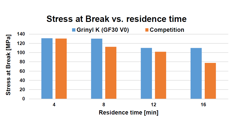 Thanks to innovative technology, the new polyketones from EMS-GRIVORY offer a significantly wider processing window. Even with longer residence times in the melt, the viscosity remains stable, guaranteeing consistent mechanical properties of the components. Grinyl K products impress with their easy flowability and are particularly suitable for applications with long flow paths or complex molds.